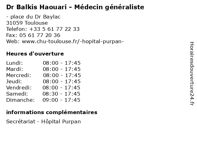 1 Dr Florent Battefort - Médecin généraliste (Distance: 0,00 km) - place du Dr Baylac, 31059 Toulouse battefort, consultation, docteur, dr, florent, généraliste, med, médecin, traitement 2 Dr Delphine Cachera - Médecin généraliste (Distance: 0,00 km) - place du Dr Baylac, 31059 Toulouse cachera, consultation, delphine, docteur, dr, généraliste, med, médecin, traitement 3 Dr Jean-Luc Davignon - Médecin généraliste (Distance: 0,00 km) - place du Dr Baylac, 31059 Toulouse consultation, davignon, docteur, dr, généraliste, jean, luc, med, médecin, traitement 4 Dr Guillaume Jaudet - Médecin généraliste (Distance: 0,00 km) - place du Dr Baylac, 31059 Toulouse consultation, docteur, dr, guillaume, généraliste, jaudet, med, médecin, traitement 5 Dr Kévin Ehya - Médecin généraliste (Distance: 3,06 km) 2b Rue de Bûches, 31700 Blagnac consultation, docteur, dr, ehya, généraliste, kévin, med, médecin, médecine, traitement 6 Dr PIeere Alquier - Médecin Généraliste (Distance: 3,79 km) 1 Rue Dominique Ingres, 31700 Blagnac alquier, consultations, docteur, dr, généraliste, médecin, médical, pieere, pierre |