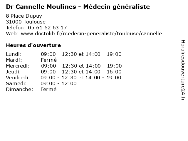 | Lundi | 09:00-12:30 et 14:00-19:00 |