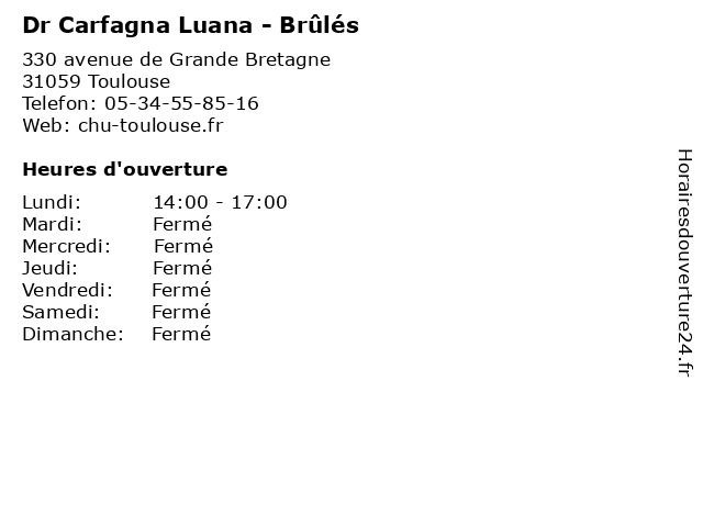1 Dr Carfagna Luana - Chirurgie pédiatrique viscérale (Distance: 0,00 km) 330 avenue de Grande Bretagne, 31059 Toulouse carfagna, chirurgie, docteur, dr, hôpital, luana, médecine, pédiatrique, viscérale 2 Pr. Grolleau Raoux Jean Louis - Chirurgie plastique et des brûlés (Distance: 3,07 km) 2 Rue Viguerie, 31300 Toulouse brûlés, chirurgie, des, docteur, et, grolleau, jean, louis, medecins, plastique, pr., raoux, sante 3 Dr. Chanel Laura - Chirurgie plastique et des brûlés (Distance: 3,07 km) 2 Rue Viguerie, 31300 Toulouse brûlés, chanel, chirurgie, des, docteur, dr., et, laura, medecins, plastique, sante 4 Dr. Eburdery Harold - Chirurgie plastique et des brûlés (Distance: 3,07 km) 2 Rue Viguerie, 31300 Toulouse brûlés, chirurgie, des, docteur, dr., eburdery, et, harold, medecins, plastique, sante 5 Pr. Chavoin Jean Pierre - Chirurgie plastique et des brûlés (Distance: 3,07 km) 2 Rue Viguerie, 31300 Toulouse brûlés, chavoin, chirurgie, des, docteur, et, jean, medecins, pierre, plastique, pr., sante 6 Pr. Garrdio Stowhas Ignacio - Chirurgie plastique et des brûlés (Distance: 3,07 km) 2 Rue Viguerie, 31300 Toulouse brûlés, chirurgie, des, docteur, et, garrdio, ignacio, medecins, plastique, pr., sante, stowhas |