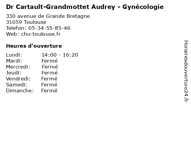 1 Dr Cartault-Grandmottet Audrey - Hormone de croissance (Distance: 0,00 km) 330 avenue de Grande Bretagne, 31059 Toulouse audrey, cartault, croissance, de, docteur, dr, grandmottet, hormone, hôpital, médecine 2 Dr Cartault-Grandmottet Audrey - Endocrinologie (Distance: 0,00 km) 330 avenue de Grande Bretagne, 31059 Toulouse audrey, cartault, docteur, dr, endocrinologie, grandmottet, hôpital, médecine 3 Dr Pienkowski Catherine - Gynécologie (Distance: 0,00 km) 330 avenue de Grande Bretagne, 31059 Toulouse catherine, docteur, dr, gynécologie, hôpital, médecine, pienkowski 4 Dr. Grandmottet Beatrice -Algologie (Distance: 2,14 km) 45 Avenue du Lombez, 31076 Toulouse algologie, beatrice, docteur, dr., grandmottet, medecins, sante 5 Dr. Cartault Grandmottet Audrey - Pédiatrie - Dermatologie pédiatrique (Distance: 3,07 km) 2 Rue Viguerie, 31300 Toulouse audrey, cartault, dermatologie, docteur, dr., grandmottet, medecins, pédiatrie, pédiatrique, sante 6 Optique Plein Centre Les Opticiens GRANDMOTTET (Distance: 5,52 km) 11 Allée d'Occitanie, 31770 Colomiers centre, grandmottet, les, opticiens, optique, plein |