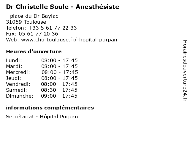 Termes de recherche pour Dr Christelle Soule - Anesthésiste:soule, med, christelle, traitement, docteur, médecin, consultation, dr, anesthésiste |