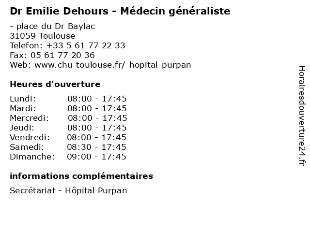 1 Dr Emilie Berard - Médecin spécialiste de santé publique (Distance: 0,00 km) - place du Dr Baylac, 31059 Toulouse berard, consultation, de, docteur, dr, emilie, med, médecin, publique, santé, spécialiste, traitement 2 Emilie Rusques - Sage-femme (Distance: 0,46 km) 330 avenue de Grande-Bretagne, 31059 Toulouse consultation, docteur, emilie, femme, med, medecine, medical, médecin, rusques, sage, traitement 3 Dr Emilie Jourdes - Pédiatre (Distance: 0,46 km) 330 avenue de Grande-Bretagne, 31059 Toulouse consultation, docteur, dr, emilie, jourdes, med, médecin, pédiatre, traitement 4 Emilie Cantagrel-Costes - Sage-femme (Distance: 0,46 km) 330 avenue de Grande-Bretagne, 31059 Toulouse cantagrel, consultation, costes, docteur, emilie, femme, med, medecine, medical, médecin, sage, traitement 5 Emilie Storai - Sage-femme (Distance: 0,46 km) 330 avenue de Grande-Bretagne, 31059 Toulouse consultation, docteur, emilie, femme, med, medecine, medical, médecin, sage, storai, traitement 6 Emilie Beziat - Masseur-kinésithérapeute (Distance: 1,77 km) 6 Rue Anne Frank, 31300 Toulouse beziat, emilie, kiné, kinésithérapeute, masseur, rééducation, soin |
