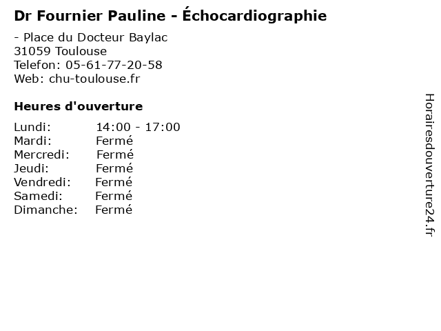 1 Dr Boudjellil Rabah - Échocardiographie (Distance: 0,00 km) - Place du Docteur Baylac, 31059 Toulouse boudjellil, docteur, dr, hôpital, médecine, rabah, échocardiographie 2 Dr Lairez Olivier - Échocardiographie (Distance: 0,00 km) - Place du Docteur Baylac, 31059 Toulouse docteur, dr, hôpital, lairez, médecine, olivier, échocardiographie 3 Dr Pozzo Jeoffrey - Échocardiographie (Distance: 0,00 km) - Place du Docteur Baylac, 31059 Toulouse docteur, dr, hôpital, jeoffrey, médecine, pozzo, échocardiographie 4 Dr Pradel Sarah - Échocardiographie (Distance: 0,00 km) - Place du Docteur Baylac, 31059 Toulouse docteur, dr, hôpital, médecine, pradel, sarah, échocardiographie 5 Dr Souletie-Blot Nathalie - Échocardiographie (Distance: 0,00 km) - Place du Docteur Baylac, 31059 Toulouse blot, docteur, dr, hôpital, médecine, nathalie, souletie, échocardiographie 6 Dr Pauline Lansalot-Matras - Médecin généraliste (Distance: 0,04 km) - place du Dr Baylac, 31059 Toulouse consultation, docteur, dr, généraliste, lansalot, matras, med, médecin, pauline, traitement |