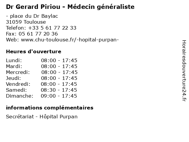 | Lundi | 08:00-17:45 |
