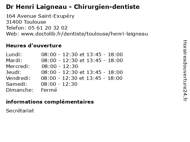 | Lundi | 08:00-12:30 et 13:45-18:00 |