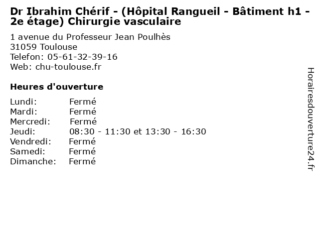 Termes de recherche pour Dr Ibrahim Chérif - (Hôpital Rangueil - Bâtiment h1 - 2e étage) Chirurgie vasculaire:hopital, medecine, étage, batiment, 2e, chirurgie, docteur, rangueil, dr, ibrahim, vasculaire, cherif, h1 |