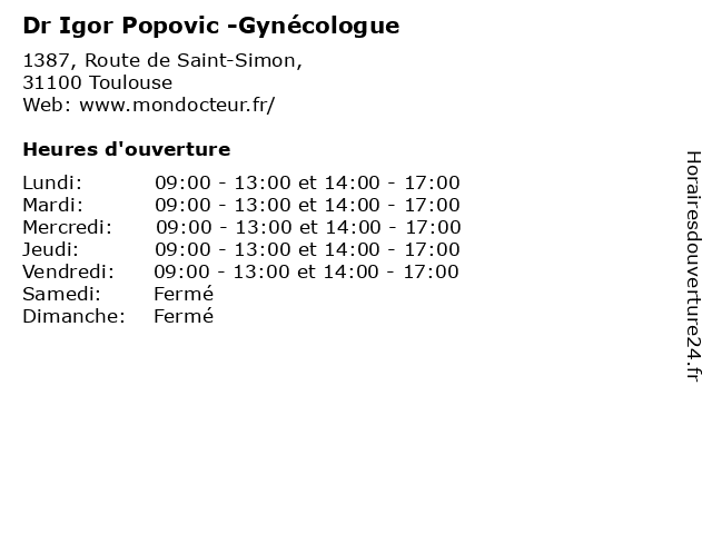 | Lundi | 09:00-13:00 et 14:00-17:00 |