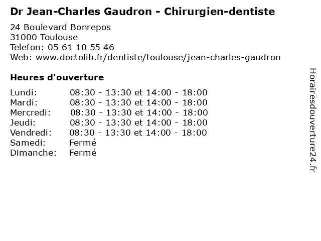 | Vendredi | 08:30-13:30 et 14:00-18:00 |