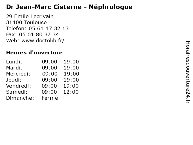 | Lundi | 09:00-19:00 |