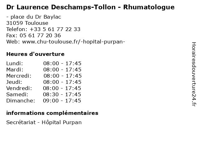 1 Dr Laurence Moreno - Médecin généraliste (Distance: 0,00 km) - place du Dr Baylac, 31059 Toulouse consultation, docteur, dr, généraliste, laurence, med, moreno, médecin, traitement 2 Dr Sophie Henaux - Rhumatologue (Distance: 0,00 km) - place du Dr Baylac, 31059 Toulouse consultation, docteur, dr, henaux, med, médecin, rhumatologue, sophie, traitement 3 Dr Helene Braun - Rhumatologue (Distance: 0,00 km) - place du Dr Baylac, 31059 Toulouse braun, consultation, docteur, dr, helene, med, médecin, rhumatologue, traitement 4 Dr Richard Koch - Rhumatologue (Distance: 0,00 km) - place du Dr Baylac, 31059 Toulouse consultation, docteur, dr, koch, med, médecin, rhumatologue, richard, traitement 5 Dr Guillaume Laustriat - Rhumatologue (Distance: 0,00 km) - place du Dr Baylac, 31059 Toulouse consultation, docteur, dr, guillaume, laustriat, med, médecin, rhumatologue, traitement 6 Dr Lesueur Laurence - Ophtalmologie pédiatrique (Distance: 0,04 km) - Place du Docteur Baylac, 31059 Toulouse docteur, dr, hôpital, laurence, lesueur, médecine, ophtalmologie, pédiatrique |