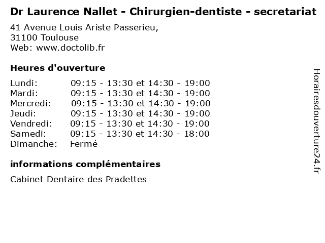 | Lundi | 09:15-13:30 et 14:30-19:00 |
