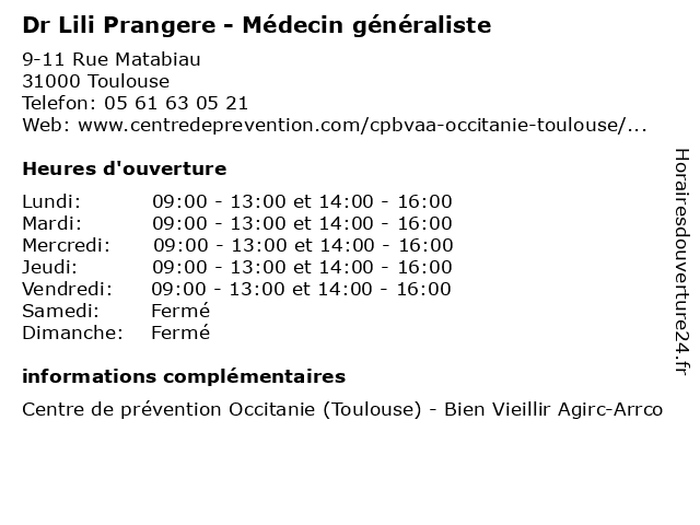 | Lundi | 09:00-13:00 et 14:00-16:00 |