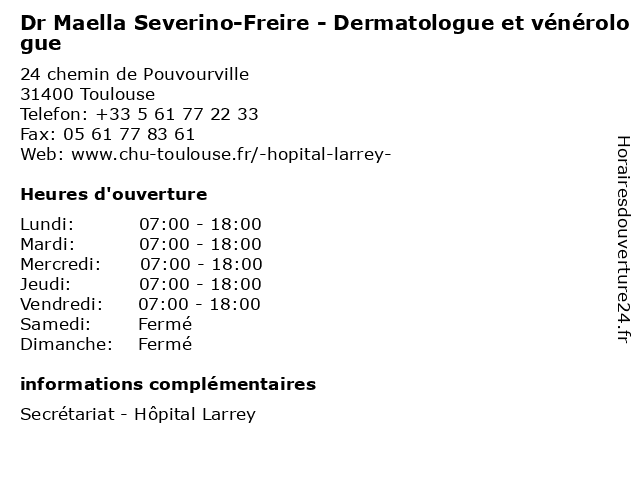 1 Dr Giuliana Onnis - Dermatologue et vénérologue (Distance: 0,00 km) 24 chemin de Pouvourville, 31400 Toulouse consultation, dermatologue, docteur, dr, et, giuliana, med, médecin, onnis, traitement, vénérologue 2 Dr Maria Polina Konstantinou - Dermatologue et vénérologue (Distance: 0,32 km) - chemin de Pouvourville, 31400 Toulouse consultation, dermatologue, docteur, dr, et, konstantinou, maria, med, médecin, polina, traitement, vénérologue 3 Dr Cristina Livideanu - Dermatologue et vénérologue (Distance: 0,32 km) - chemin de Pouvourville, 31400 Toulouse consultation, cristina, dermatologue, docteur, dr, et, livideanu, med, médecin, traitement, vénérologue 4 Dr Marie-Claude Marguery - Dermatologue et vénérologue (Distance: 0,32 km) - chemin de Pouvourville, 31400 Toulouse claude, consultation, dermatologue, docteur, dr, et, marguery, marie, med, médecin, traitement, vénérologue 5 Dr Ana Beatris Rossi - Dermatologue et vénérologue (Distance: 0,32 km) - chemin de Pouvourville, 31400 Toulouse ana, beatris, consultation, dermatologue, docteur, dr, et, med, médecin, rossi, traitement, vénérologue 6 Dr Sophie Thellier - Dermatologue et vénérologue (Distance: 0,32 km) - chemin de Pouvourville, 31400 Toulouse consultation, dermatologue, docteur, dr, et, med, médecin, sophie, thellier, traitement, vénérologue |