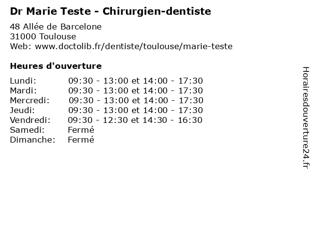 | Mardi | 09:30-13:00 et 14:00-17:30 |