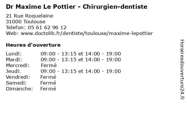 | Lundi | 09:00-13:15 et 14:00-19:00 |