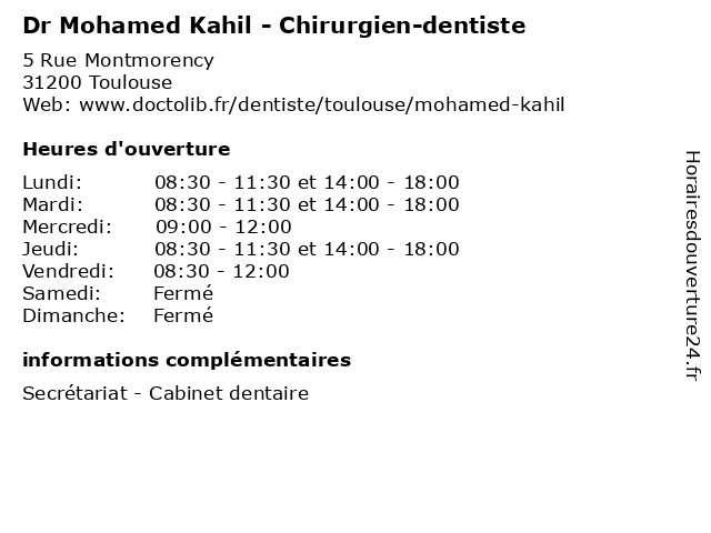 | Lundi | 08:30-11:30 et 14:00-18:00 |