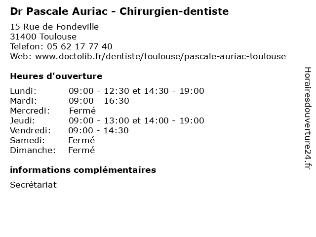 | Lundi | 09:00-12:30 et 14:30-19:00 |