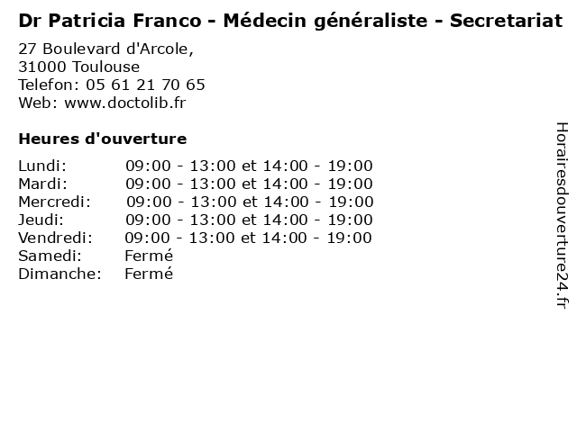 Termes de recherche pour Dr Patricia Franco - Médecin généraliste - Secretariat:franco, medecine, medical, patricia, secretariat, traitement, généraliste, médecin, dr, pharmaceutique |