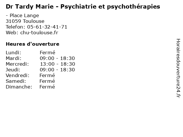 1 Dr Franchitto Ludivine - Psychiatrie de liaison, périnatalité et maternologie (Distance: 0,00 km) - Place Lange, 31059 Toulouse de, docteur, dr, et, franchitto, hôpital, liaison, ludivine, maternologie, médecine, psychiatrie, périnatalité 2 Dr Journot-Reverbel Katia - Psychiatrie et psychothérapies (Distance: 0,00 km) - Place Lange, 31059 Toulouse docteur, dr, et, hôpital, journot, katia, médecine, psychiatrie, psychothérapies, reverbel 3 Pr Schmitt Laurent - Psychiatrie générale, psychologie médicale, addictions et dépendances (Distance: 2,90 km) 330 avenue de Grande Bretagne, 31059 Toulouse addictions, docteur, dépendances, et, générale, hôpital, laurent, médecine, médicale, pr, psychiatrie, psychologie, schmitt 4 Pr Schmitt Laurent - Psychiatrie générale, psychologie médicale, addictions et dépendances - consultations privées (Distance: 2,90 km) 330 avenue de Grande Bretagne, 31059 Toulouse addictions, consultations, docteur, dépendances, et, générale, hôpital, laurent, médecine, médicale, pr, privées, psychiatrie, psychologie, schmitt 5 Dr Arbus Christophe - Psychiatrie gérontologique (Distance: 2,90 km) 330 avenue de Grande Bretagne, 31059 Toulouse arbus, christophe, docteur, dr, gérontologique, hôpital, médecine, psychiatrie 6 Dr Yrondi Antoine - Psychiatrie générale et troubles de l'humeur (Distance: 2,90 km) 330 avenue de Grande Bretagne, 31059 Toulouse antoine, de, docteur, dr, et, générale, hôpital, l'humeur, médecine, psychiatrie, troubles, yrondi |