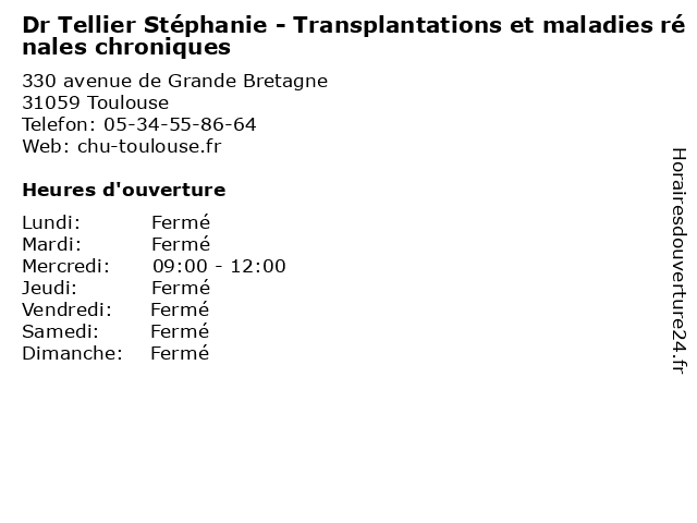 1 Dr Gatnier Arnaud - Transplantations et maladies rénales chroniques (Distance: 0,00 km) 330 avenue de Grande Bretagne, 31059 Toulouse arnaud, chroniques, docteur, dr, et, gatnier, hôpital, maladies, médecine, rénales, transplantations 2 Dr Brochard Karine - Transplantations et maladies rénales chroniques (Distance: 0,00 km) 330 avenue de Grande Bretagne, 31059 Toulouse brochard, chroniques, docteur, dr, et, hôpital, karine, maladies, médecine, rénales, transplantations 3 Dr Meunier Ariane -Transplantations et maladies rénales chroniques (Distance: 0,00 km) 330 avenue de Grande Bretagne, 31059 Toulouse ariane, chroniques, docteur, dr, et, hôpital, maladies, meunier, médecine, rénales, transplantations 4 Mme Barba Nadine - Transplantations et maladies rénales chroniques (Distance: 0,00 km) 330 avenue de Grande Bretagne, 31059 Toulouse barba, chroniques, docteur, et, hôpital, maladies, mme, médecine, nadine, rénales, transplantations 5 Dr Tellier Stéphanie - Néphrologie (Distance: 0,00 km) 330 avenue de Grande Bretagne, 31059 Toulouse docteur, dr, hôpital, médecine, néphrologie, stéphanie, tellier 6 Dr Delclaux Stéphanie - Orthopédie et traumatologie (Distance: 0,42 km) - Place du Docteur Baylac, 31059 Toulouse delclaux, docteur, dr, et, hôpital, médecine, orthopédie, stéphanie, traumatologie |