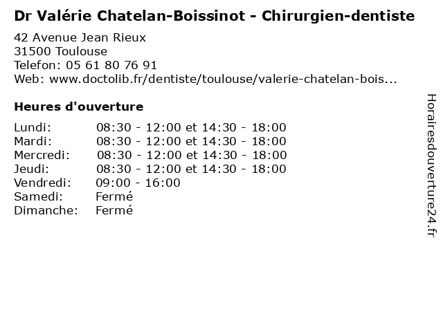 | Lundi | 08:30-12:00 et 14:30-18:00 |