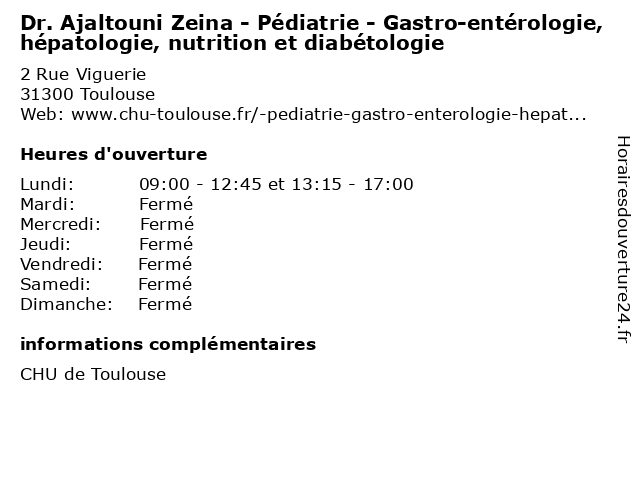 1 Dr. Ajaltouni Zeina - Pédiatrie - Dermatologie pédiatrique (Distance: 0,00 km) 2 Rue Viguerie, 31300 Toulouse ajaltouni, dermatologie, docteur, dr., medecins, pédiatrie, pédiatrique, sante, zeina 2 Pr. Peron Jean Marie - Gastro-entérologie et hépatologie [Purpan] (Distance: 0,00 km) 2 Rue Viguerie, 31300 Toulouse [purpan], docteur, entérologie, et, gastro, hépatologie, jean, marie, medecins, peron, pr., sante 3 Pr. Bureau Christophe - Gastro-entérologie et hépatologie [Purpan] (Distance: 0,00 km) 2 Rue Viguerie, 31300 Toulouse [purpan], bureau, christophe, docteur, entérologie, et, gastro, hépatologie, medecins, pr., sante 4 Dr. Barange Karl - Gastro-entérologie et hépatologie [Purpan] (Distance: 0,00 km) 2 Rue Viguerie, 31300 Toulouse [purpan], barange, docteur, dr., entérologie, et, gastro, hépatologie, karl, medecins, sante 5 Dr. Metivier Sophie - Gastro-entérologie et hépatologie [Purpan] (Distance: 0,00 km) 2 Rue Viguerie, 31300 Toulouse [purpan], docteur, dr., entérologie, et, gastro, hépatologie, medecins, metivier, sante, sophie 6 Dr. Robic Marie Angele - Gastro-entérologie et hépatologie [Purpan] (Distance: 0,00 km) 2 Rue Viguerie, 31300 Toulouse [purpan], angele, docteur, dr., entérologie, et, gastro, hépatologie, marie, medecins, robic, sante |