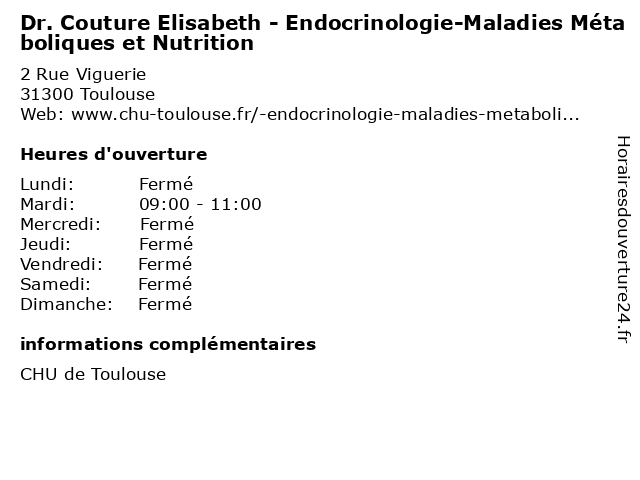 Termes de recherche pour Dr. Couture Elisabeth - Endocrinologie-Maladies Métaboliques et Nutrition:et, couture, santé, elisabeth, nutrition, docteur, dr., médecins, maladies, métaboliques, endocrinologie |