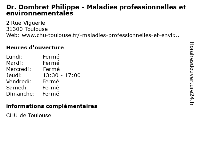 1 Dr. Esquirol Yolande - Maladies professionnelles et environnementales (Distance: 0,00 km) 2 Rue Viguerie, 31300 Toulouse docteur, dr., environnementales, esquirol, et, maladies, medecins, professionnelles, sante, yolande 2 Dr. Herin Fabrice - Maladies professionnelles et environnementales (Distance: 0,00 km) 2 Rue Viguerie, 31300 Toulouse docteur, dr., environnementales, et, fabrice, herin, maladies, medecins, professionnelles, sante 3 Dr. Lombard Laure - Maladies professionnelles et environnementales (Distance: 0,00 km) 2 Rue Viguerie, 31300 Toulouse docteur, dr., environnementales, et, laure, lombard, maladies, medecins, professionnelles, sante 4 Dr. Mailhol Claire- Maladies professionnelles et environnementales (Distance: 0,00 km) 2 Rue Viguerie, 31300 Toulouse claire, docteur, dr., environnementales, et, mailhol, maladies, medecins, professionnelles, sante 5 Dr. Pujazon Marie-Christine - Maladies professionnelles et environnementales (Distance: 0,00 km) 2 Rue Viguerie, 31300 Toulouse christine, docteur, dr., environnementales, et, maladies, marie, medecins, professionnelles, pujazon, sante 6 Dr. Rouane Jean-René - Maladies professionnelles et environnementales (Distance: 0,00 km) 2 Rue Viguerie, 31300 Toulouse docteur, dr., environnementales, et, jean, maladies, medecins, professionnelles, rené, rouane, sante |