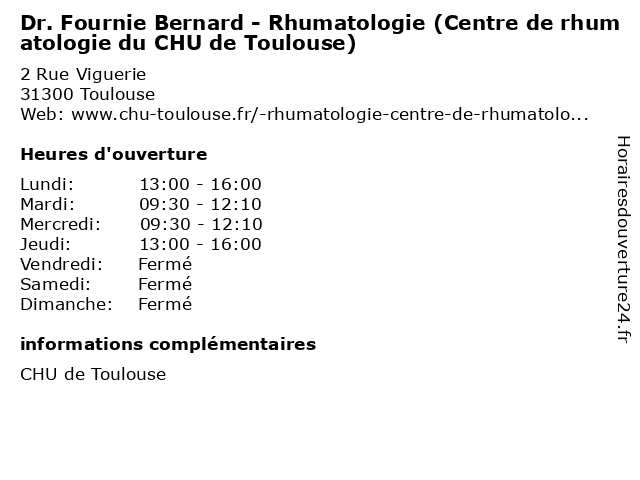 Termes de recherche pour Dr. Fournie Bernard - Rhumatologie (Centre de rhumatologie du CHU de Toulouse):du, de, bernard, toulouse, centre, santé, chu, docteur, dr., médecins, fournié, rhumatologie |