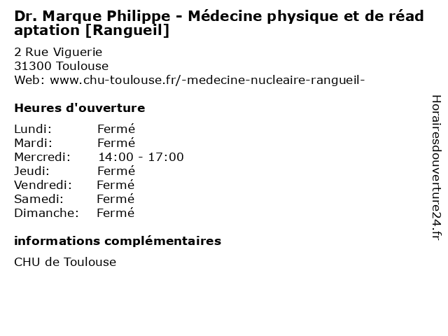 Termes de recherche pour Dr. Marque Philippe - Médecine physique et de réadaptation [Rangueil]:et, de, medecine, santé, philippe, marque, physique, docteur, dr., médecins, réadaptation, [rangueil] |