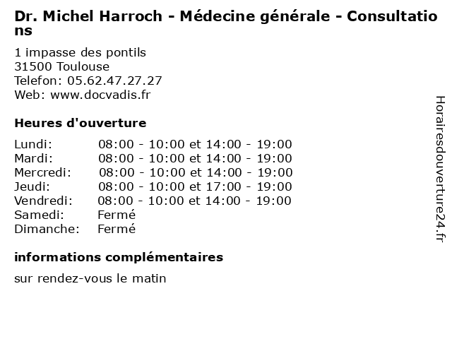 | Lundi | 08:00-10:00 et 14:00-19:00 |