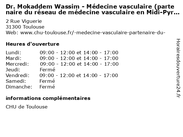 | Mardi | 09:00-12:00 et 14:00-17:00 |