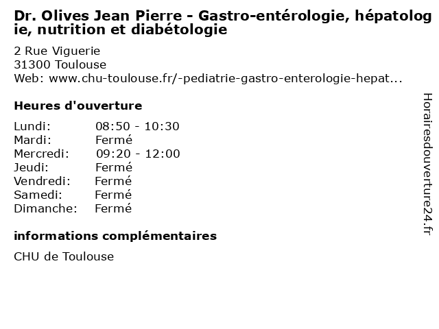 1 Pr. Peron Jean Marie - Gastro-entérologie et hépatologie [Purpan] (Distance: 0,00 km) 2 Rue Viguerie, 31300 Toulouse [purpan], docteur, entérologie, et, gastro, hépatologie, jean, marie, medecins, peron, pr., sante 2 Pr. Bureau Christophe - Gastro-entérologie et hépatologie [Purpan] (Distance: 0,00 km) 2 Rue Viguerie, 31300 Toulouse [purpan], bureau, christophe, docteur, entérologie, et, gastro, hépatologie, medecins, pr., sante 3 Dr. Barange Karl - Gastro-entérologie et hépatologie [Purpan] (Distance: 0,00 km) 2 Rue Viguerie, 31300 Toulouse [purpan], barange, docteur, dr., entérologie, et, gastro, hépatologie, karl, medecins, sante 4 Dr. Metivier Sophie - Gastro-entérologie et hépatologie [Purpan] (Distance: 0,00 km) 2 Rue Viguerie, 31300 Toulouse [purpan], docteur, dr., entérologie, et, gastro, hépatologie, medecins, metivier, sante, sophie 5 Dr. Robic Marie Angele - Gastro-entérologie et hépatologie [Purpan] (Distance: 0,00 km) 2 Rue Viguerie, 31300 Toulouse [purpan], angele, docteur, dr., entérologie, et, gastro, hépatologie, marie, medecins, robic, sante 6 Dr. Laurent Julie - Gastro-entérologie et hépatologie [Purpan] (Distance: 0,00 km) 2 Rue Viguerie, 31300 Toulouse [purpan], docteur, dr., entérologie, et, gastro, hépatologie, julie, laurent, medecins, sante |
