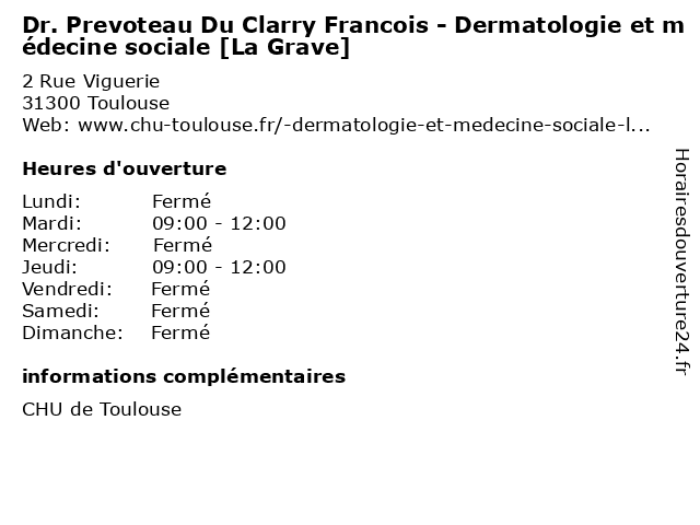 1 Dr. Prevoteau Du Clary - Centre gratuit d’information de dépistage et de diagnostic (CeGIDD) (Distance: 0,00 km) 2 Rue Viguerie, 31300 Toulouse cegidd, centre, clary, de, diagnostic, docteur, dr., du, d’information, dépistage, et, gratuit, medecins, prevoteau, sante 2 Dr. Viraben Roland - Dermatologie et médecine sociale [La Grave] (Distance: 0,00 km) 2 Rue Viguerie, 31300 Toulouse [la, dermatologie, docteur, dr., et, grave], medecins, médecine, roland, sante, sociale, viraben 3 Dr. Aquilina Christian - Dermatologie et médecine sociale [La Grave] (Distance: 0,00 km) 2 Rue Viguerie, 31300 Toulouse [la, aquilina, christian, dermatologie, docteur, dr., et, grave], medecins, médecine, sante, sociale 4 Dr. Mularczyk Marius - Dermatologie et médecine sociale [La Grave] (Distance: 0,00 km) 2 Rue Viguerie, 31300 Toulouse [la, dermatologie, docteur, dr., et, grave], marius, medecins, mularczyk, médecine, sante, sociale 5 Dr. Pariente Karine - Dermatologie et médecine sociale [La Grave] (Distance: 0,00 km) 2 Rue Viguerie, 31300 Toulouse [la, dermatologie, docteur, dr., et, grave], karine, medecins, médecine, pariente, sante, sociale 6 Dr. Grimoud Anne Marie - Dermatologie et médecine sociale [La Grave] (Distance: 0,00 km) 2 Rue Viguerie, 31300 Toulouse [la, anne, dermatologie, docteur, dr., et, grave], grimoud, marie, medecins, médecine, sante, sociale |