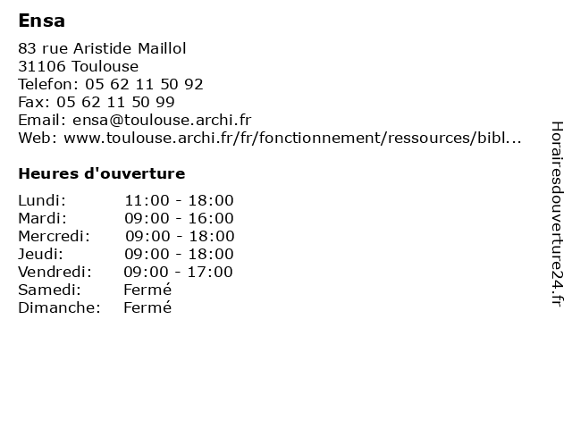 1 Ensa - Juillet et Septembre (Distance: 0,00 km) 83 rue Aristide Maillol, 31106 Toulouse cd, disques, dvd, ensa, et, juillet, livres, périodiques, septembre, vhs 2 Ecole Nationale Supérieure d'Architecture (ENSA) - Bibliothèque (Distance: 0,00 km) 83 rue Aristide Maillol, 31106 Toulouse bibliothèque, cd audio, cd.rom, d'architecture, ecole, ensa, livres, nationale, revues, supérieure 3 Ecole Nationale Supérieure d'Architecture (ENSA) - Bibliothèque (juillet et septembre) (Distance: 0,00 km) 83 rue Aristide Maillol, 31106 Toulouse bibliothèque, cd audio, cd.rom, d'architecture, ecole, ensa, et, horaires, juillet, livres, nationale, revues, septembre, supérieure 4 Cafeteria Associative De l'Ensa De Toulouse (Distance: 0,05 km) Ensa Toulouse, 31100 Toulouse associative, cafeteria, ensa, restaurants, toulouse 5 OCD (Distance: 4,31 km) 17, rue des Filatiers, 31000 Toulouse blu-ray, cd, dvd, jeux video, ocd, vinyles 6 O'CD (Distance: 4,31 km) 17 rue des Filatiers, 31000 Toulouse blu-ray, cd, dvd, jeux, o'cd, video, vinyles |