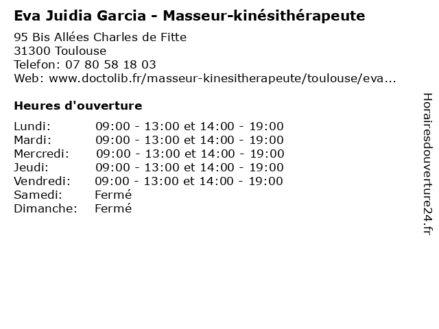 | Lundi | 09:00-13:00 et 14:00-19:00 |