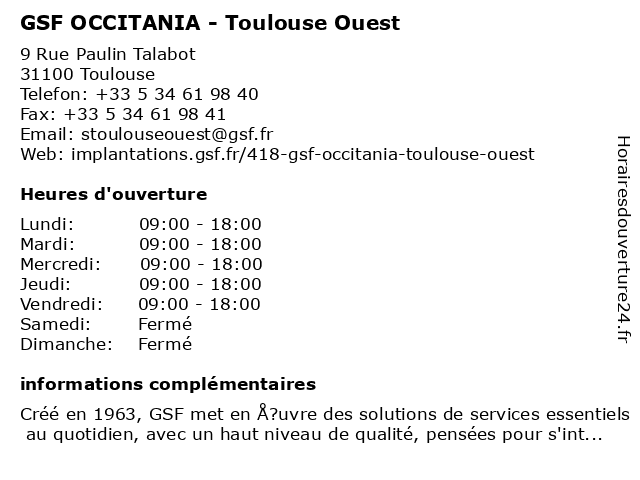Termes de recherche pour GSF OCCITANIA - Toulouse Ouest:toulouse, ouest, occitania, gsf |