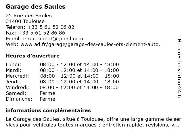 | Lundi | 08:00-12:00 et 14:00-18:00 |