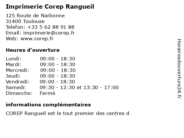 | Samedi | 09:30-12:30 et 13:30-17:00 |