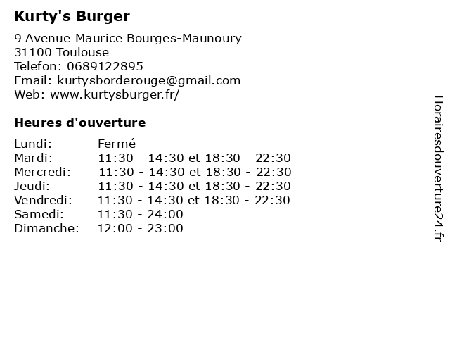 | Samedi | 11:30-24:00 |