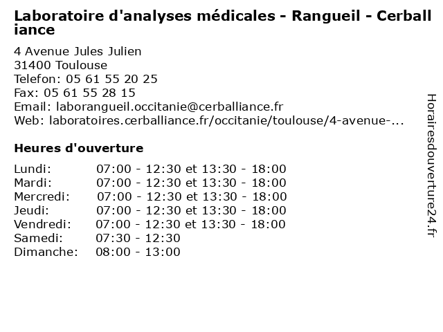 | Lundi | 07:00-12:30 et 13:30-18:00 |