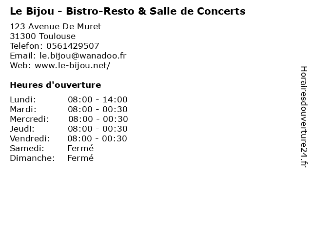 | Samedi | Fermé |