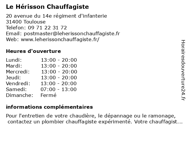 1 Restaurant Le Hérisson (Distance: 7,13 km) 6 Rue Felix Debax, 31700 Blagnac cuisine, européen, français, hérisson, le, restaurant, restauration 2 Garanka Plombier Chauffagiste Toulouse (Distance: 7,25 km) 2 Allée Paul Harris, 31200 Toulouse chauffagiste, fournisseur d'équipements de chauffage, fournisseur de chaudières, garanka, magasin de matériel de plomberie, plombier, toulouse 3 Laverie 7/7 (Distance: 3,08 km) 71 Avenue Jean Chaubet, 31500 Toulouse 7/7, laverie, nettoyeur à sec, service, vêtements 4 Ramonage Occitan (Distance: 3,11 km) 10 chemin du vallon, 31400 Toulouse cheminée, fumée, nettoyeur, occitan, ramonage 5 David Corominas - Artisan Plombier (Distance: 3,14 km) 14 Rue de Garin, 31500 Toulouse artisan, chauffage, chauffagiste, climatisation, corominas, david, entreprise, installation, plomberie, plombier, société 6 Wash'n Dry (Les Lavandines) (Distance: 7,93 km) 1 et 3 Avenue de Cornebarrieu, 31700 Blagnac dry, lavandines, laverie, les, nettoyeur à sec, pressing, repassage, service, vêtements, wash'n  |
