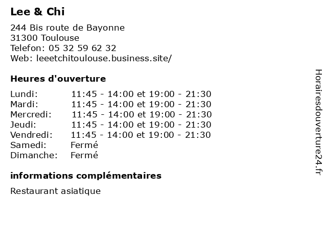 | Mardi | 11:45-14:00 et 19:00-21:30 |