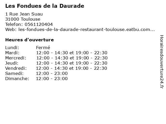| Mardi | 12:00-14:30 et 19:00-22:30 |