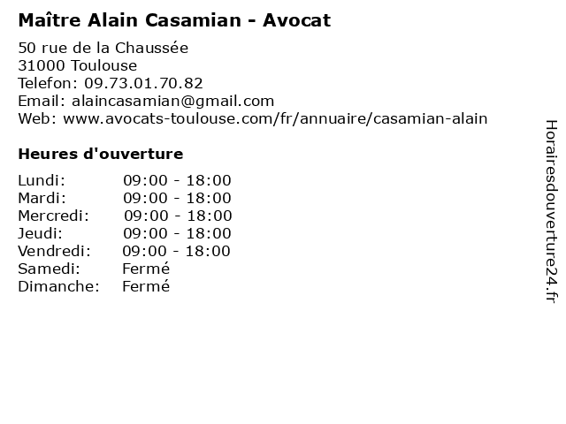 1 Maître Alain Lazard - Avocat (Distance: 0,40 km) 15 rue Saint-Rémésy, 31000 Toulouse alain, alain lazard, avocat, droit, juridictionnelle, lazard, maître, négociation 2 Alain Vorms - Pédicure-podologue (Distance: 0,57 km) 85 Grande Rue Saint-Michel, 31400 Toulouse alain, médecin, médecine, médical, pharmaceutique, podologue, pédicure, secretariat, traitement, vorms 3 Dr. Grafeille Alain - Cardiologie (Distance: 0,86 km) 2 Rue Viguerie, 31300 Toulouse alain, cardiologie, docteur, dr., grafeille, medecins, sante 4 Dr. Viguier Alain- Neurologie (département) (Distance: 0,86 km) 2 Rue Viguerie, 31300 Toulouse alain, docteur, dr., département, medecins, neurologie, sante, viguier 5 Dr Alain Chesimar - Médecin du travail (Distance: 0,97 km) 11 Boulevard des Récollets, 31400 Toulouse alain, chesimar, consultation, docteur, dr, du, med, médecin, traitement, travail 6 Dr Alain Thouati - Dentiste (Distance: 1,18 km) 1 Rue Gazagne,, 31300 Toulouse alain, clinic, dentiste, dr, medecin, thouati |
