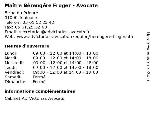 1 Maître Véronique Salles - Avocate (Distance: 0,00 km) 5 rue du Prieuré, 31000 Toulouse avocate, avocats, cabinet, conseils, contentieux, juridique, justice, litiges, maître, salles, services, véronique 2 Maître Cloris Ortholan - Avocate (Distance: 0,00 km) 5 rue du Prieuré, 31000 Toulouse avocate, avocats, cabinet, cloris, conseils, contentieux, juridique, justice, litiges, maître, ortholan, services 3 Maître Lucile Paupard - Avocate (Distance: 0,00 km) 5 rue du Prieuré, 31000 Toulouse avocate, avocats, cabinet, conseils, contentieux, juridique, justice, litiges, lucile, maître, paupard, services 4 Maître Marielle Valmary - Avocate (Distance: 0,00 km) 5 rue du Prieuré, 31000 Toulouse avocate, avocats, cabinet, conseils, contentieux, juridique, justice, litiges, marielle, maître, services, valmary 5 Maître Vincent Valade - Avocat (Distance: 0,00 km) 5 rue du Prieuré, 31000 Toulouse avocat, avocats, cabinet, conseils, contentieux, juridique, justice, litiges, maître, services, valade, vincent 6 Maître Marguerite Coustal-Crook - Avocate (Distance: 0,07 km) 15 rue Sainte-Ursule, 31000 Toulouse avocat, avocate, avocats, barreau, conseil, cours, coustal, crook, droit, défense, instance, juridictionnelle, juridique, justice, marguerite, maître, négociation, pénal, tribunal, tribunaux |