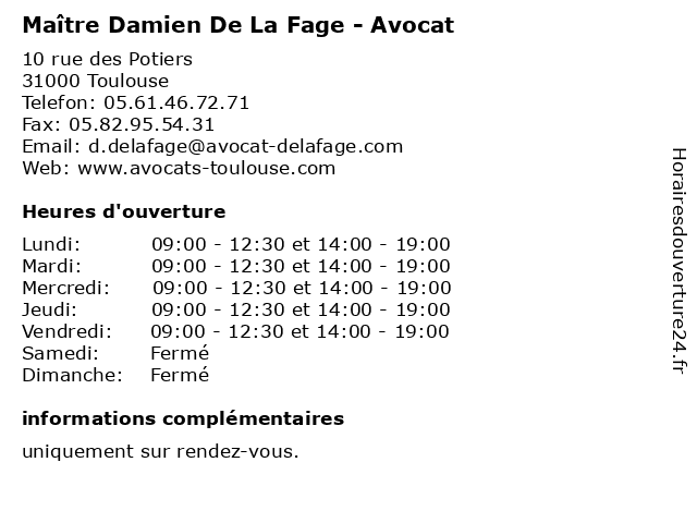 | Lundi | 09:00-12:30 et 14:00-19:00 |