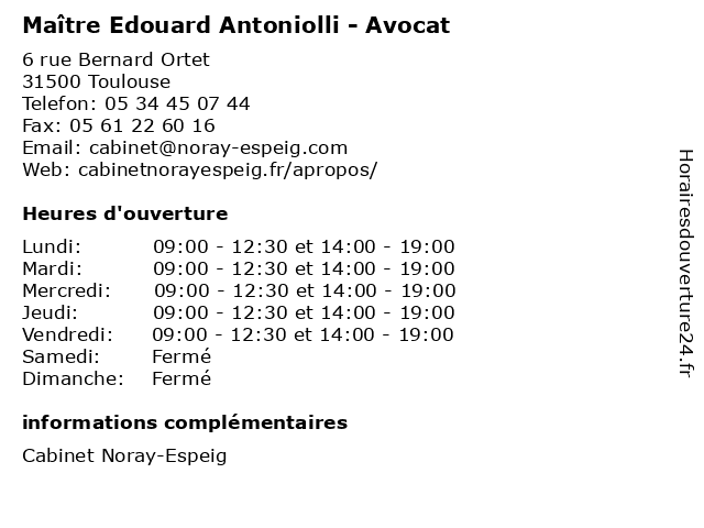 | Lundi | 09:00-12:30 et 14:00-19:00 |