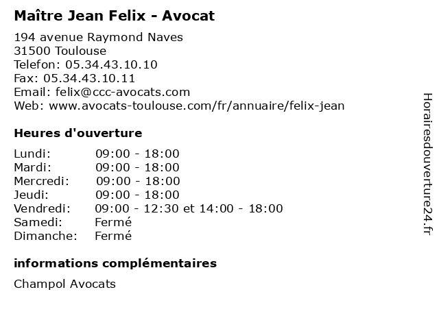| Samedi | Fermé |
